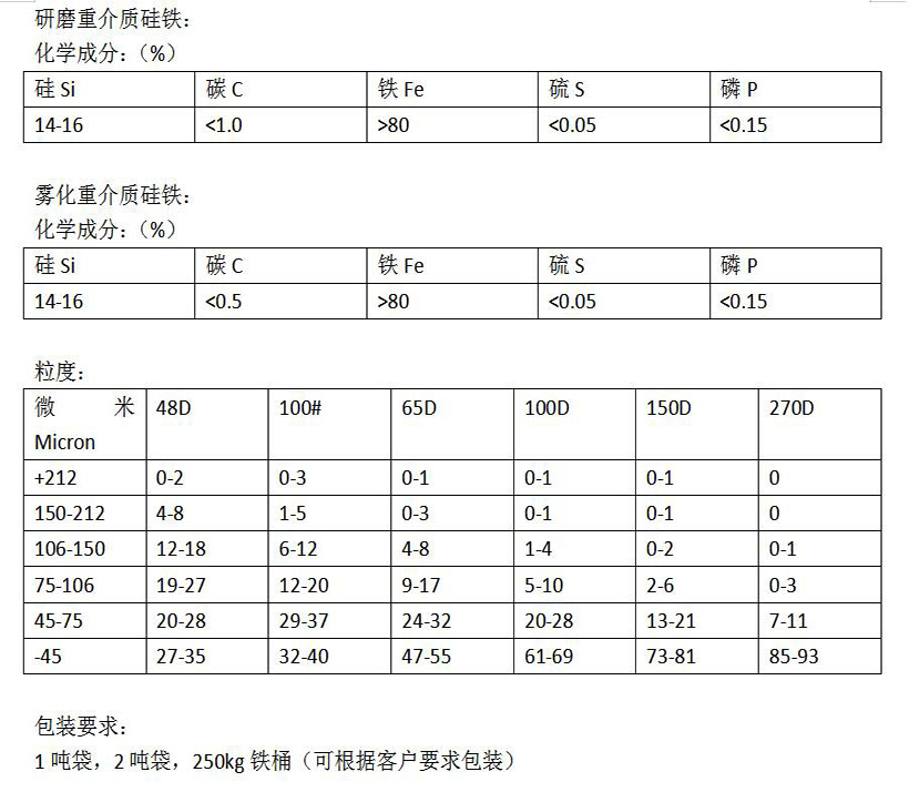 内蒙重介质硅铁是一种应用广泛,专门冶炼而成的硅内蒙铁合金,具有耐氧化,硬度大,带强磁性等特点,使用后经过筛分和磁选回收,可以返加再利用,因此,使用内蒙重介质硅铁的话,有利用降低生产成本。硅铁中含硅量小于13%时,韧性增加,给磨碎制备带来困难,而且在水中易于氧化;当含硅量超过18%时,磁选性减弱不便回收。故以含硅13%-18%,含铁87%-82%的硅铁适合使用,冶炼成块的硅铁需要经过粉碎,研磨后才使用。